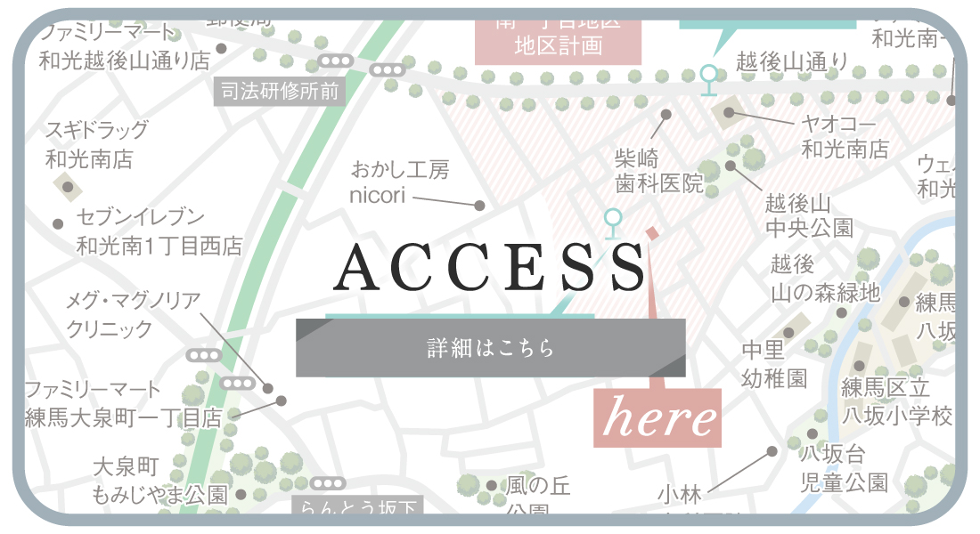 アクセス ●和光市駅より池袋駅まで【ラッシュ時: 15分 東武東上線急行(池袋行)利用。】【平常時: 12分 東武東上線快速急行(池袋行)利用。】