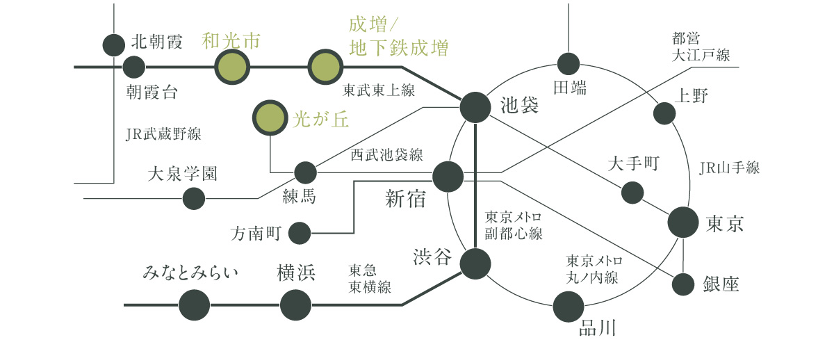 計画されている大江戸線の延伸により、移動時間の更なる短縮が期待されています。光が丘駅から先、大泉町エリアへの延伸が実現すれば、都心主要拠点へのアクセスは劇的に進化します。