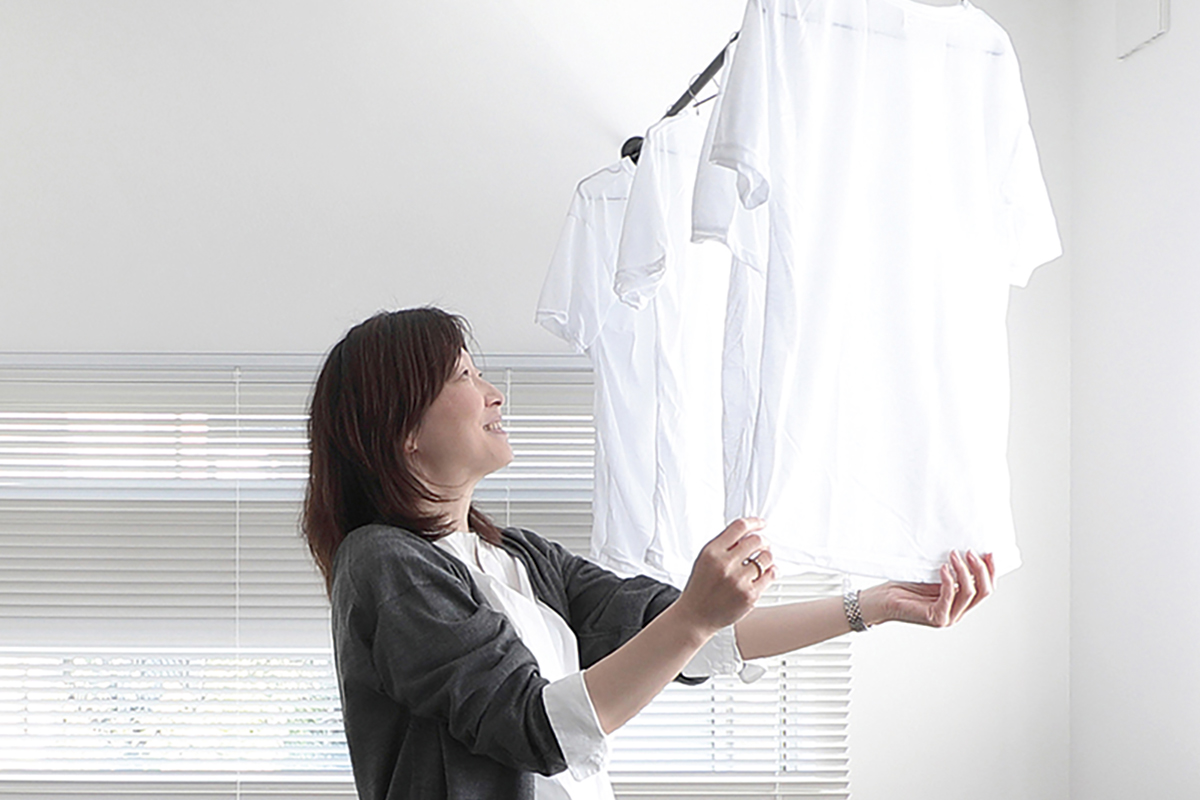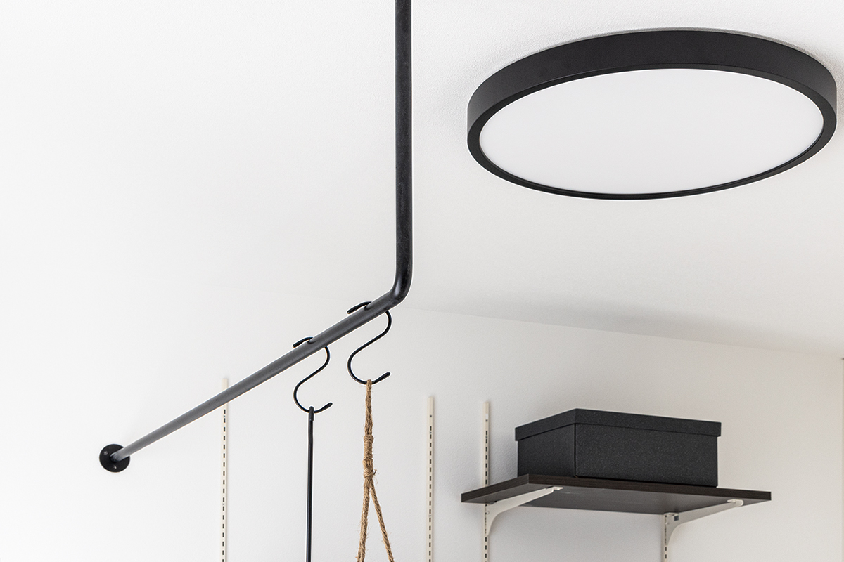 さらに、天井には便利なハンギングレールがあり、雨の日の部屋干やアイロンがけをする家事室としても利用できます。