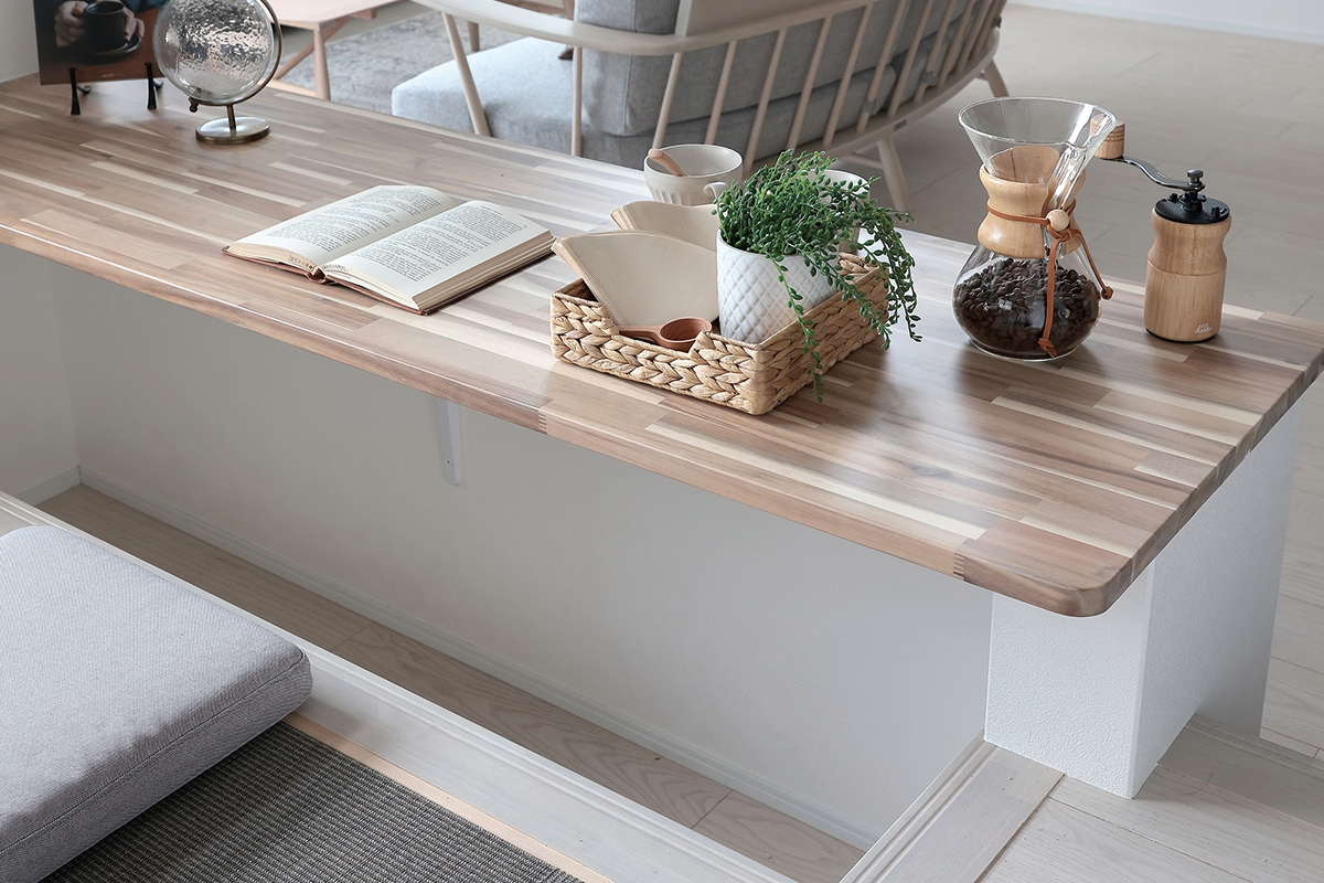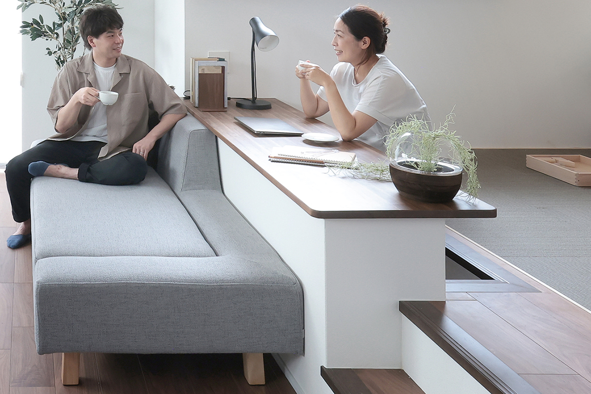 堀机カウンターを設置することで読書したり、子どもに勉強を教えたり、一緒に映画を観たりと多彩なシーンが生まれます。