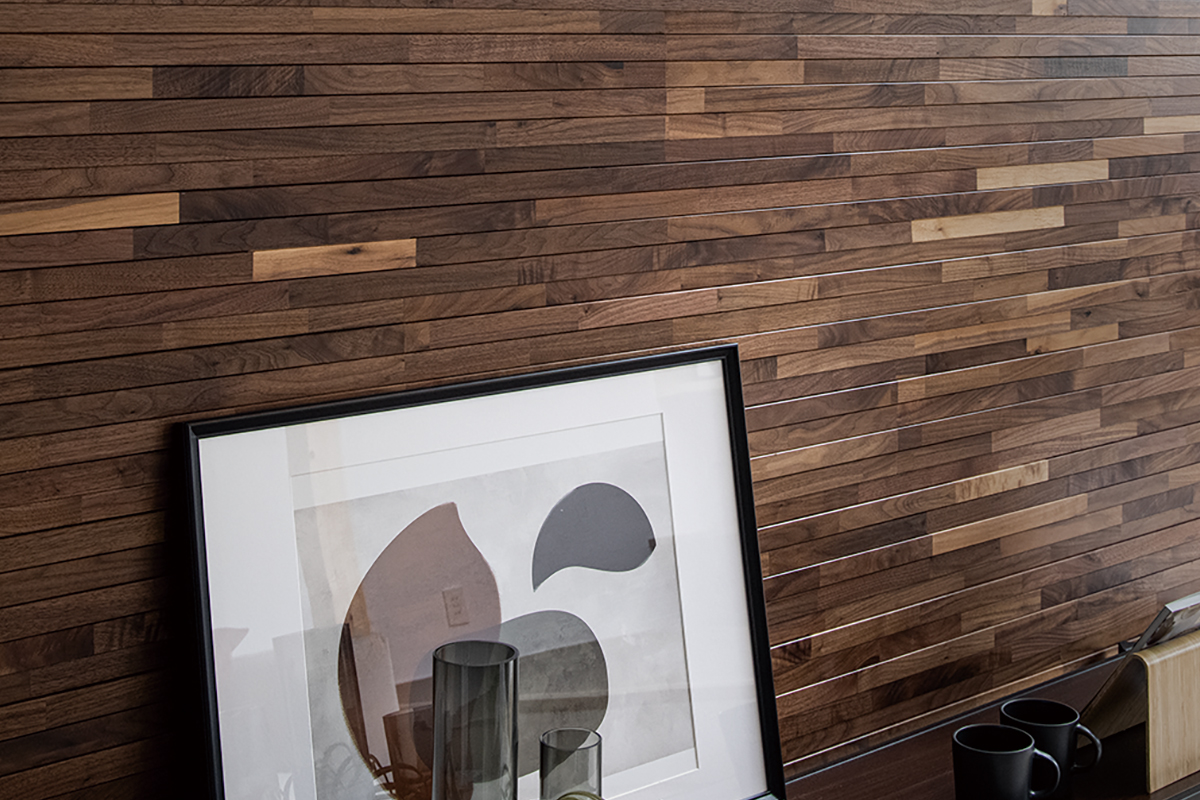 天然の銘木に細やかなボーダー加工を施すことで、その立体感による陰影が木肌の美しさを際立たせたレリーフ。