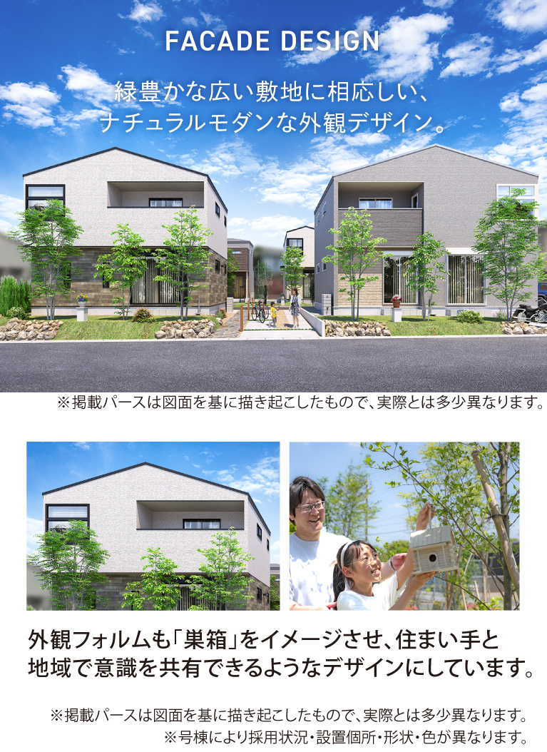 ■緑豊かな広い敷地に相応しい、ナチュラルモダンな外観デザイン