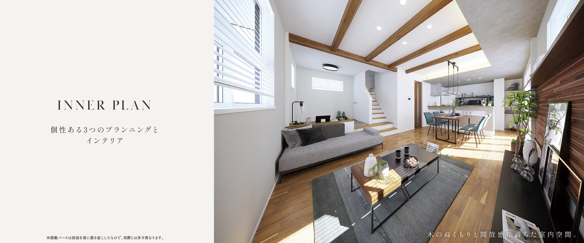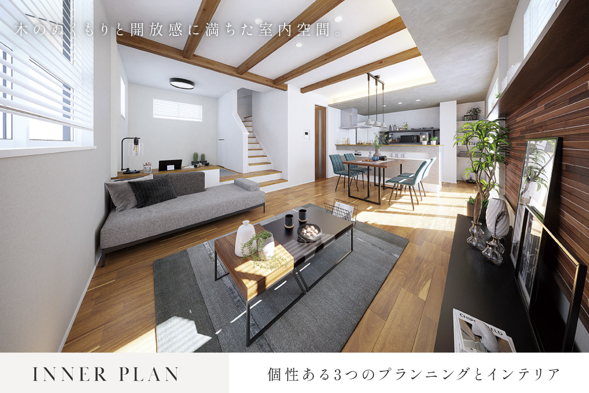 室内には木のぬくもりと光の陰影が響き合う意匠性とくつろぎに満ちた空間を設え、豊かな素材やその質感を引き立てる間接照明が日常のひとときを上質へと導きます。