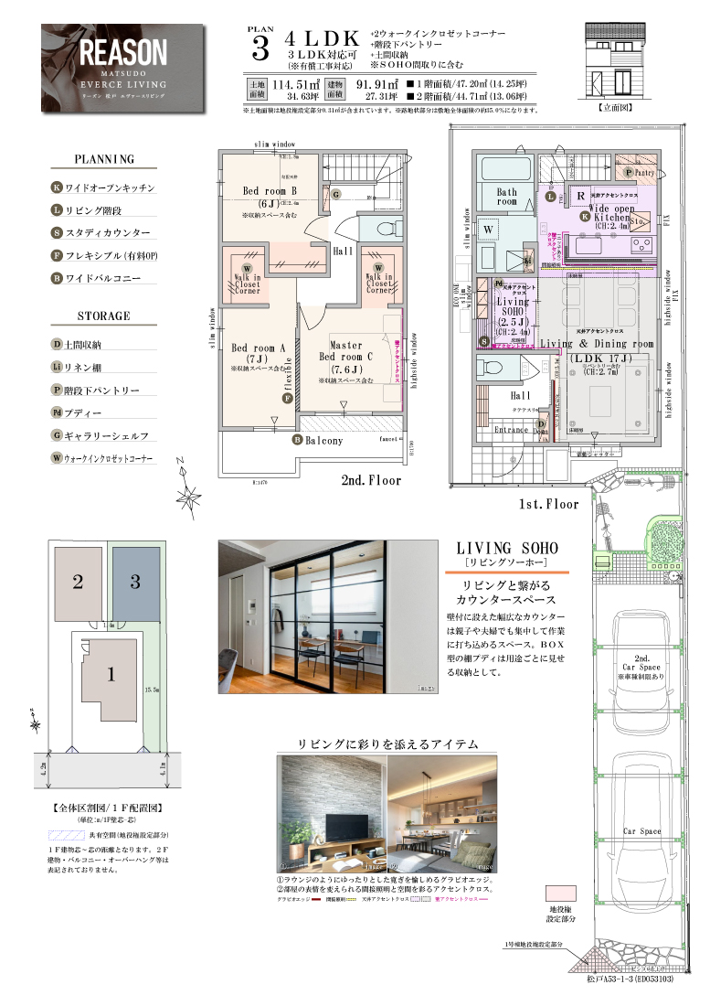 区画図・間取り|ポラス 「リーズン 松戸 エヴァースリビング」千葉県 松戸市 JR常磐線・京成松戸線 「松戸」駅 新築 一戸建て 分譲住宅