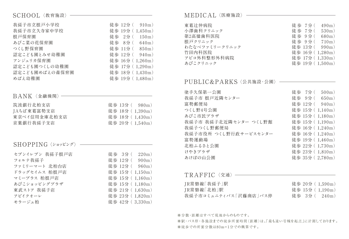 交通 JR常磐線・JR成田線「我孫子」駅まで徒歩20分