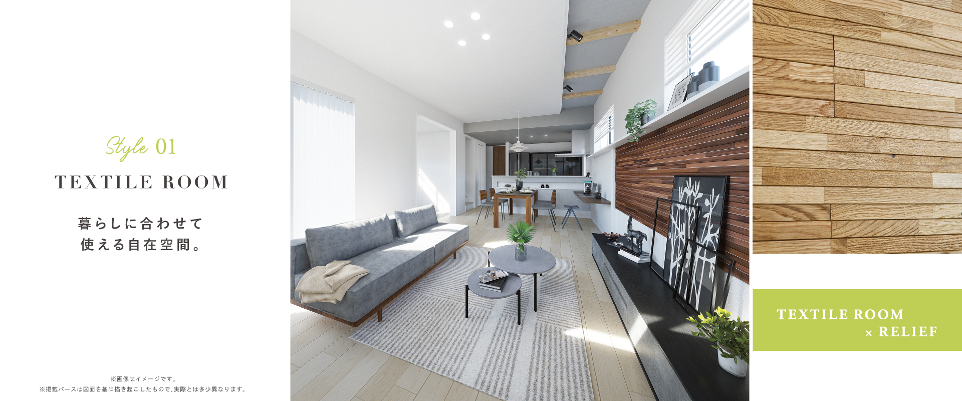モダンフォルムの邸宅に、意匠性の高い木目調や石目調のサイディングウォールが趣深い風格を醸し出す美しい景観。