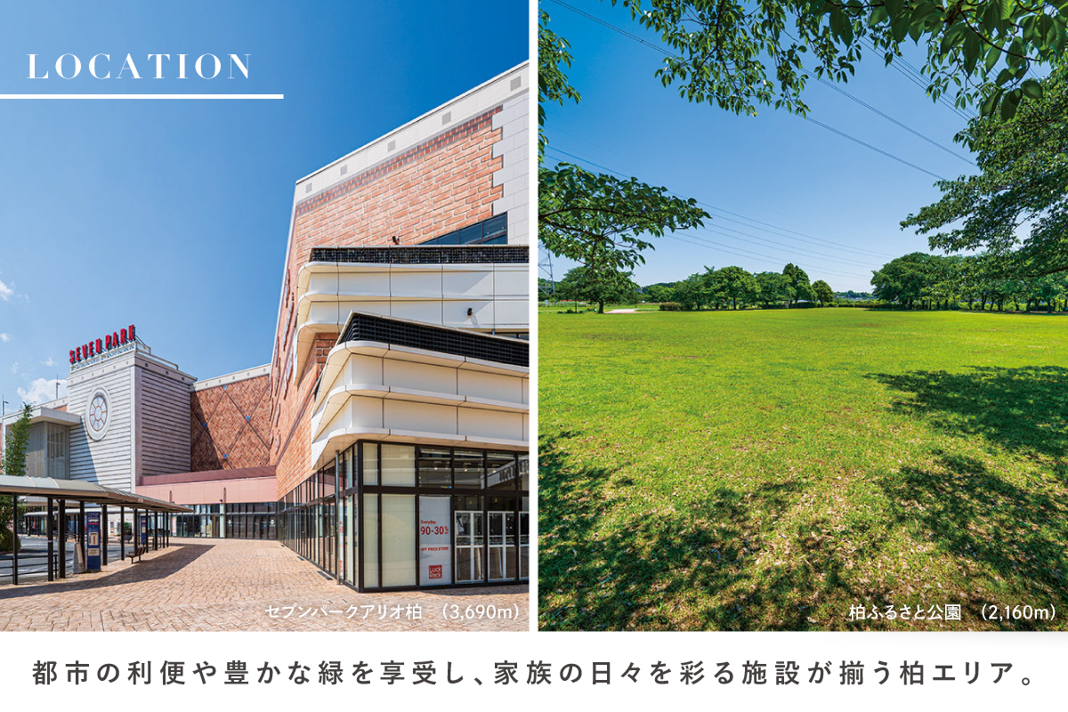 「柏」駅周辺に集結する大型商業施設や、住まい周辺の生活関連施設が快適に利用できるロケーション。