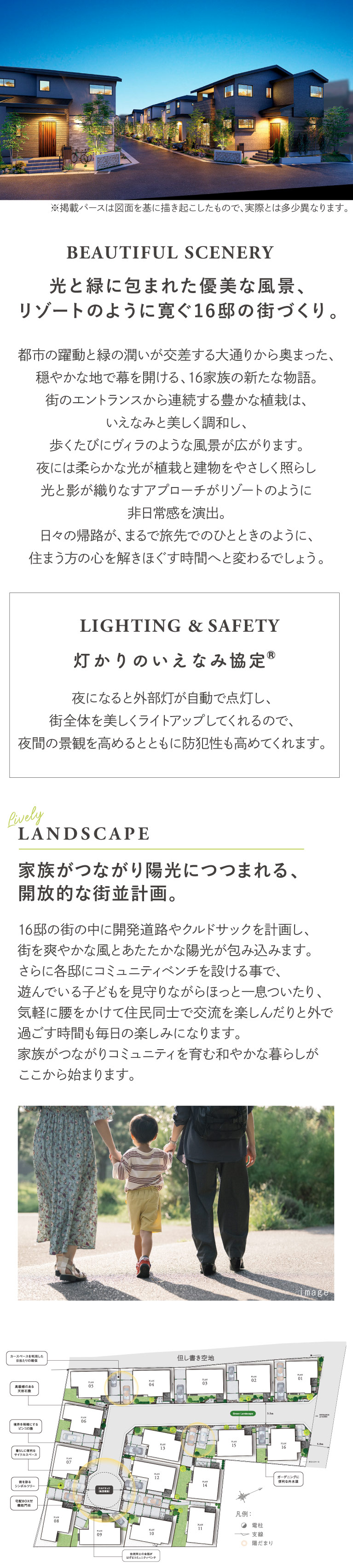 モデルハウス内覧できます【 Web予約限定 】WEBからご予約の上、ご家族でご来場頂くとAmazonギフトカード3000円分プレゼント。この機会にお越し下さい!■生活利便と豊かな自然を享受する住環境■大型商業施設が集結する「柏」エリア■JR常磐線・東武アーバンパークライン「柏」駅徒歩21分■2台分カースペース■街区内道路を中心とした全16邸の街並み