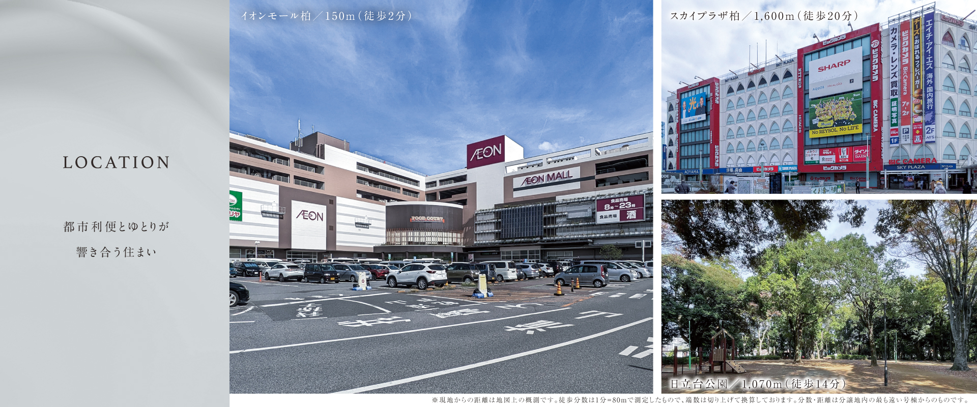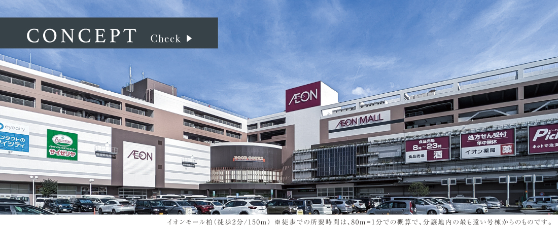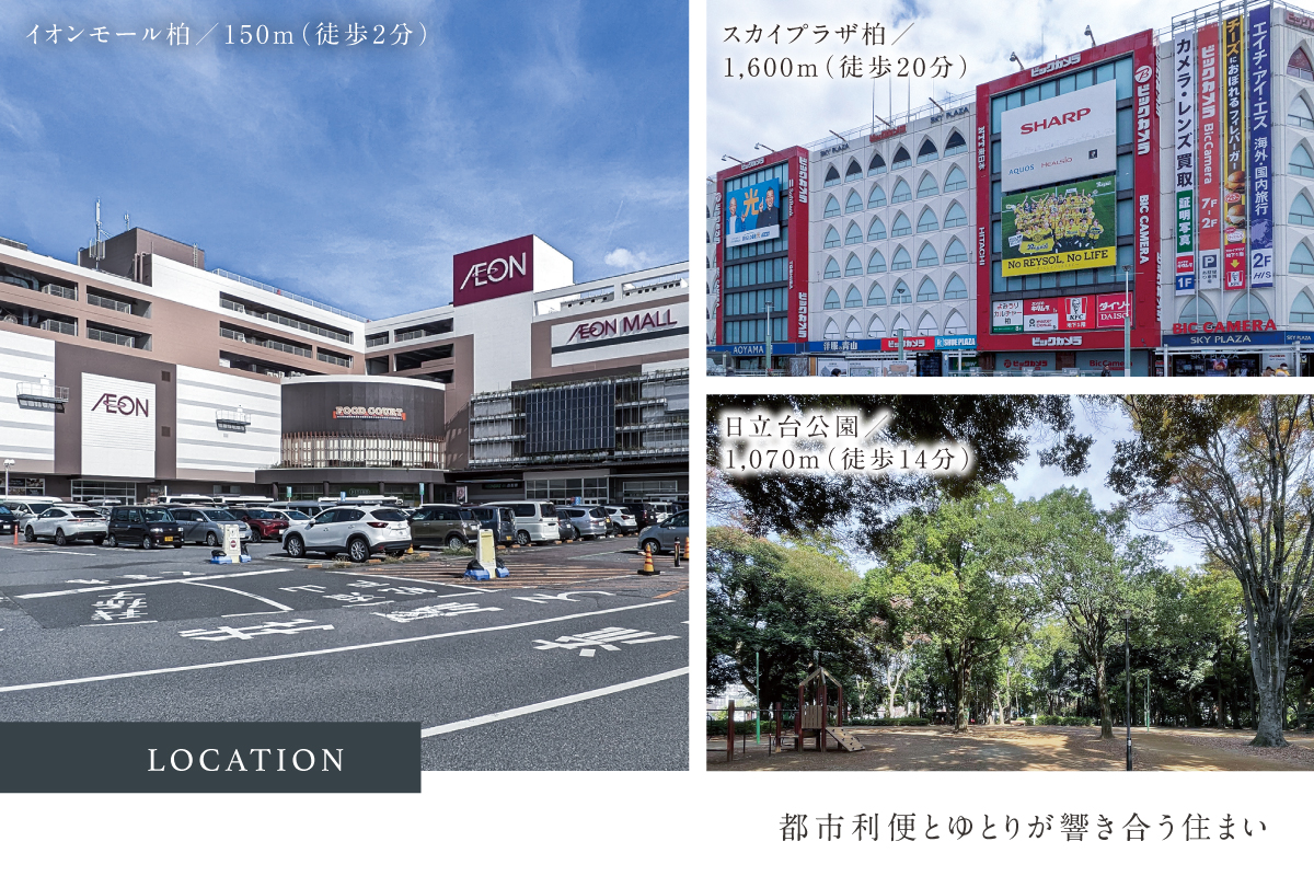 大型商業施設「イオンモール柏」へは徒歩2分で、普段使いも休日のショッピングも気軽に楽しめます。