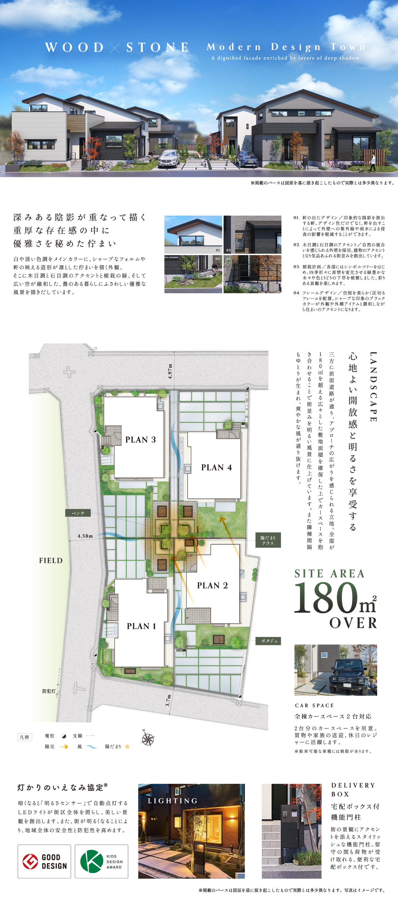 ・全棟敷地面積180m2以上のゆとり×庭や2台カースペース