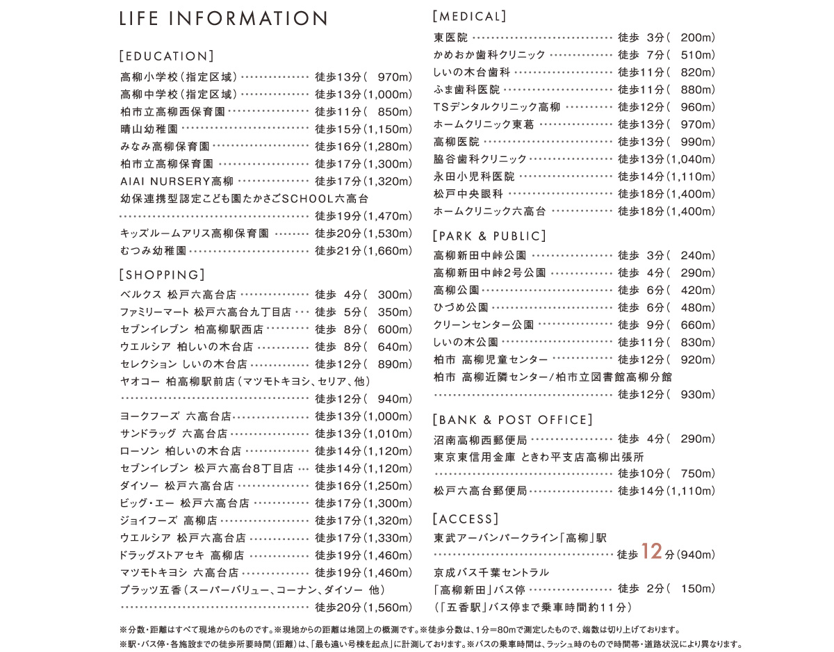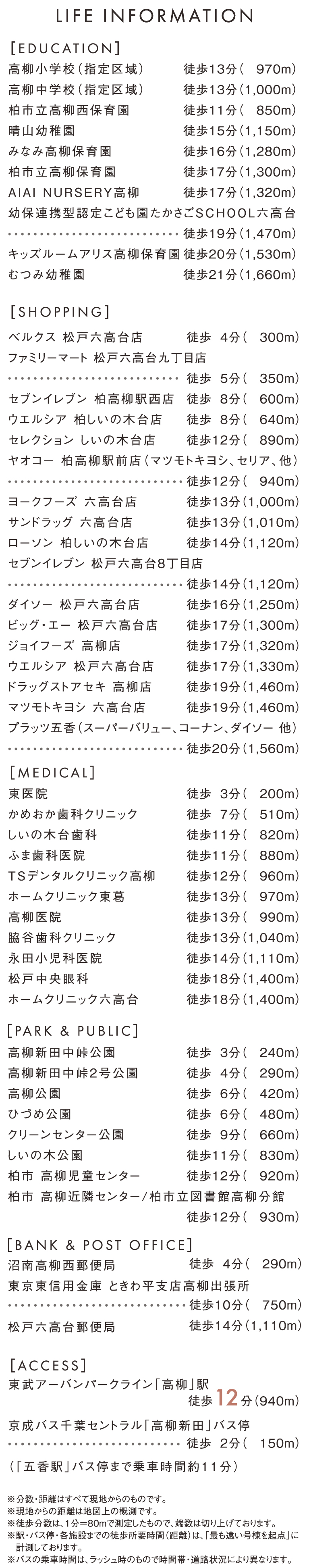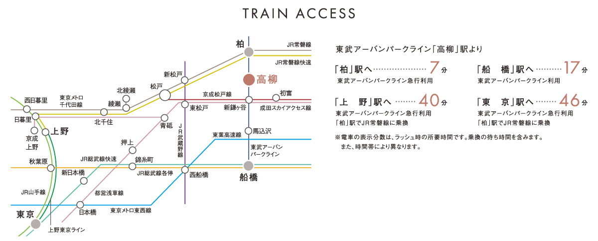 アクセス ●高柳駅より柏駅まで【ラッシュ時: 7分 東武アーバンパークライン急行(柏行)利用。】【平常時: 7分 東武アーバンパークライン急行(大宮行)利用。】