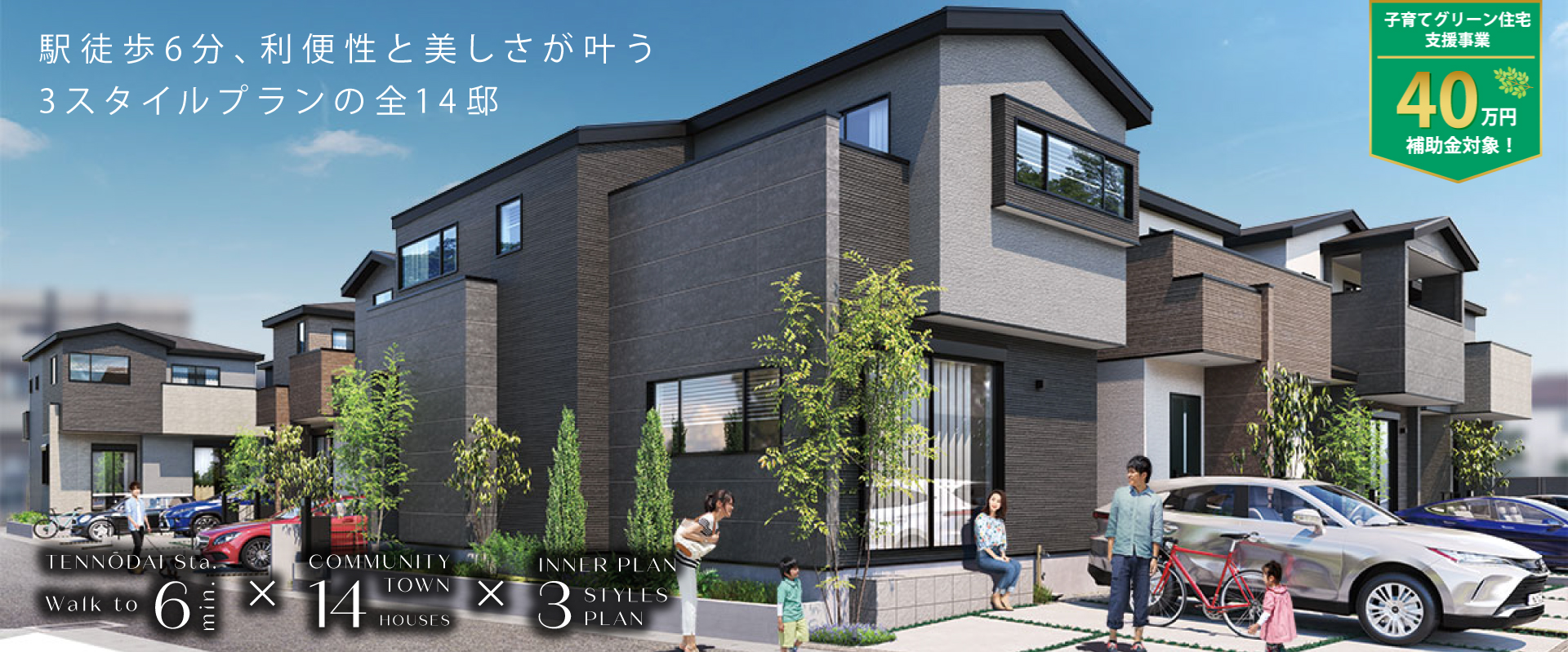JR常磐線「天王台」駅徒歩6分という駅近に加え、10分圏内に暮らし関連の施設が充実するなど美しい佇まいを感じながら利便性も享受。
