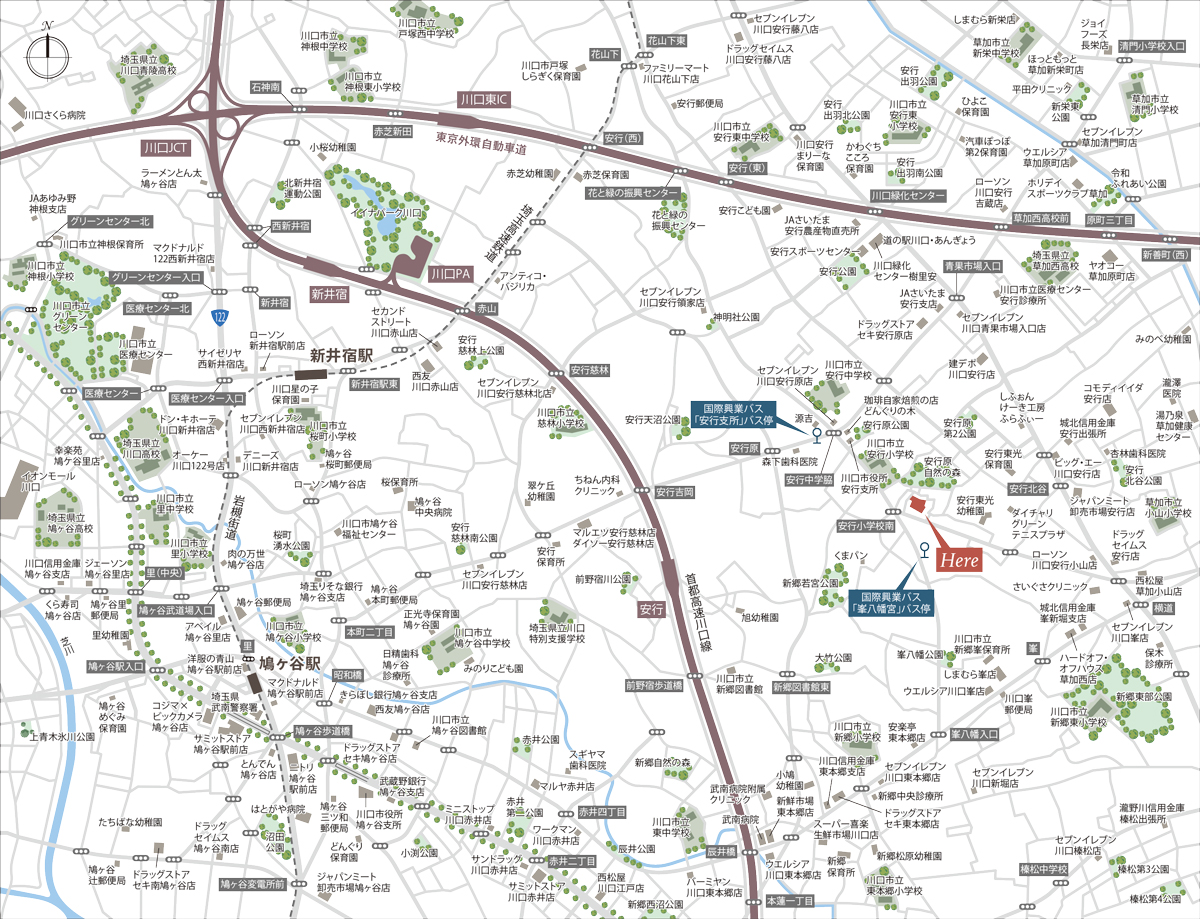 | 安行小学校 安行中学校 安行東光幼稚園 安行東光保育園 川口市立新郷峯保育所 旭幼稚園 みのべ幼稚園 小鳩幼稚園 新郷松原幼稚園 こやま保育園 安行こども園 | 徒歩 4分 徒歩 9分 徒歩 7分 徒歩 9分 徒歩 13分 徒歩 16分 徒歩 21分 徒歩 21分 徒歩 23分 徒歩 22分 徒歩 24分 | ( 260m) ( 680m) ( 490m) ( 660m) ( 1,010m) ( 1,260m) ( 1,680m) ( 1,680m) ( 1,780m) ( 1,740m) ( 1,920m) |