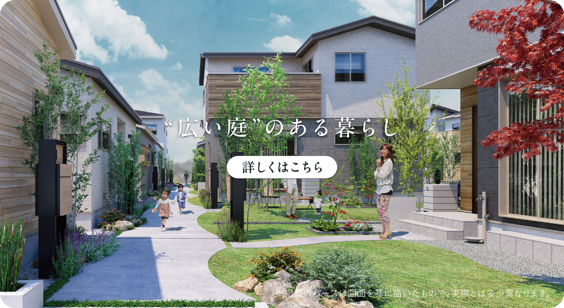 近隣物件のご紹介です。敷地面積150㎡超の広さを活かし、開放感がありのびのびと過ごせる庭と、住民同士のつながりを生む路地空間がゆとりの街並みを創出します。詳しくはこちらから。「みのりこまち 春日部・一ノ割」
