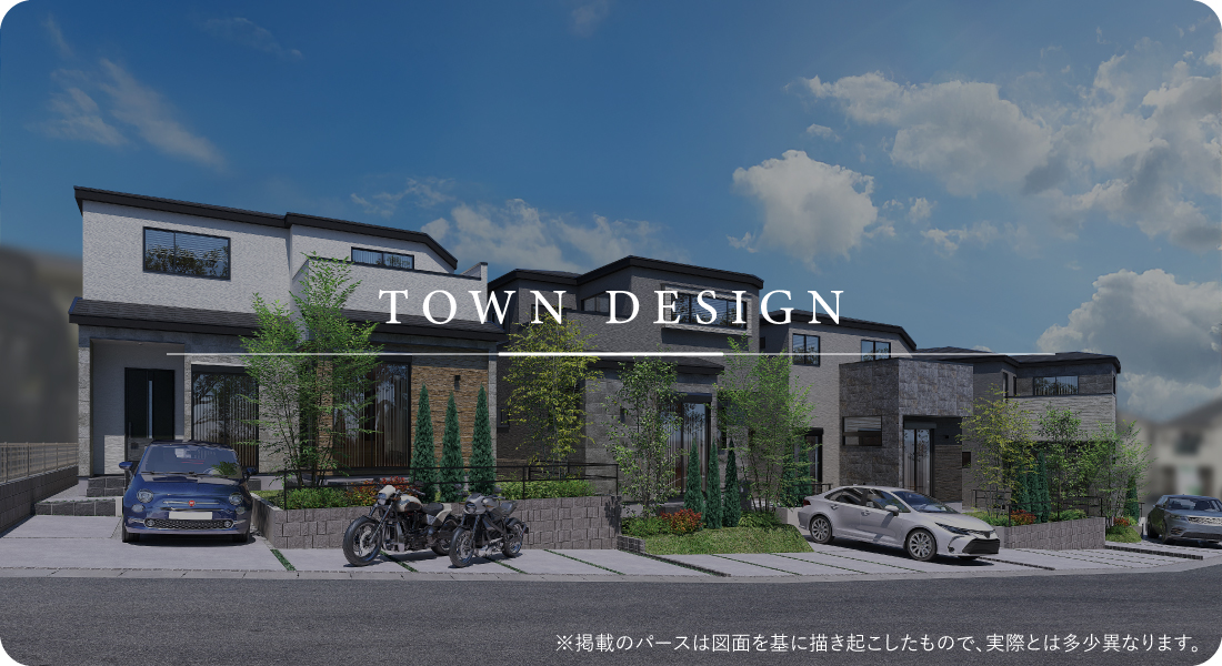 前面道路6.0mの開放感を活かしながら、庭の緑を身近に感じられる住まいを実現しました。穏やかな距離感と落ち着きある佇まいが、日常に心地よいゆとりをもたらします。