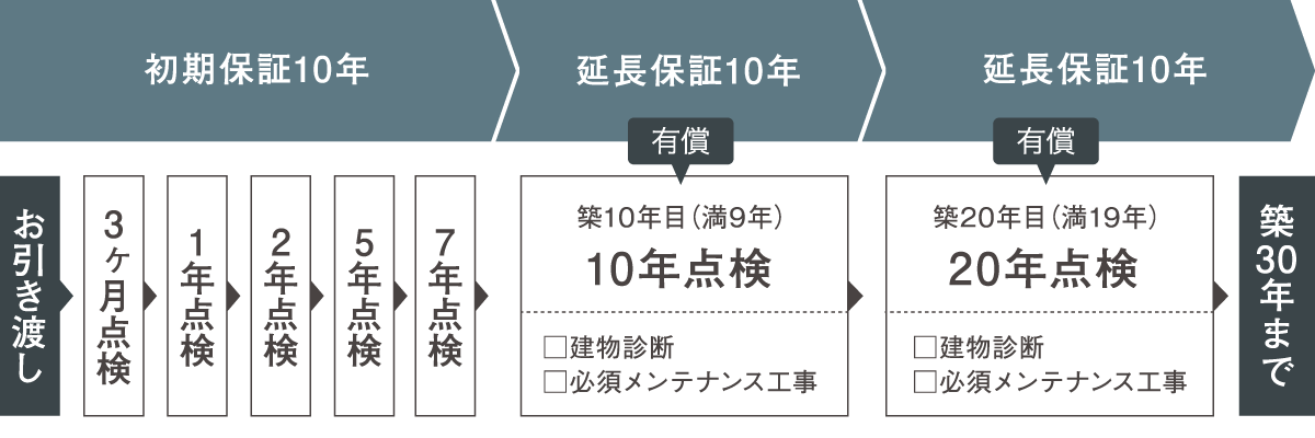 ※10、20年点検には費用がかかります。定期的な点検を持続出来るため、長いお付き合いとなります。