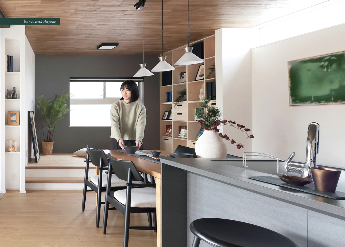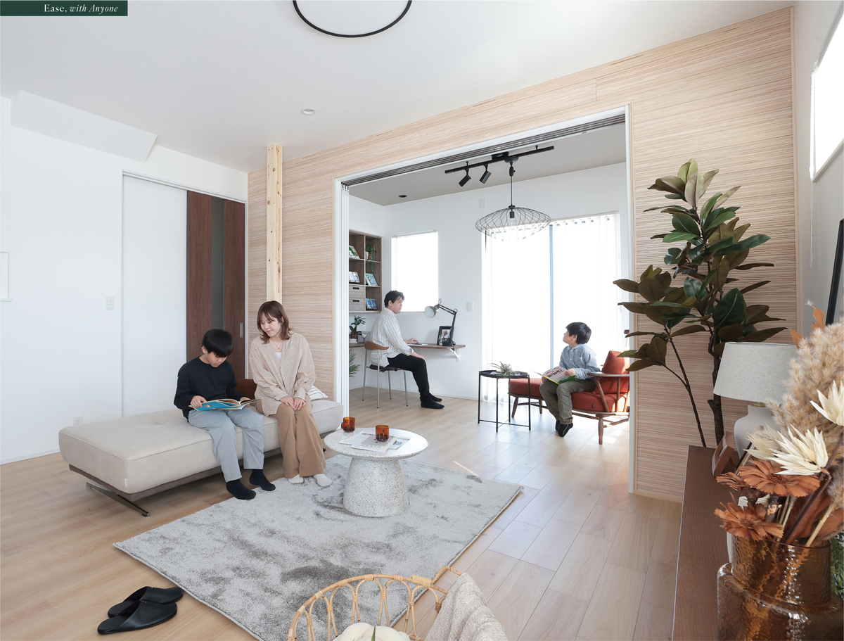 家族の団らんも、思い思いに過ごす時間も大らかに受けとめるリビングをカタチに。素足が心地よいステージ、読書にぴったりのリーディングルーム、広がりを感じるサンクン、そして多彩な使い方のできるマルチルームの4スタイルから暮らし方に応じて選べます。