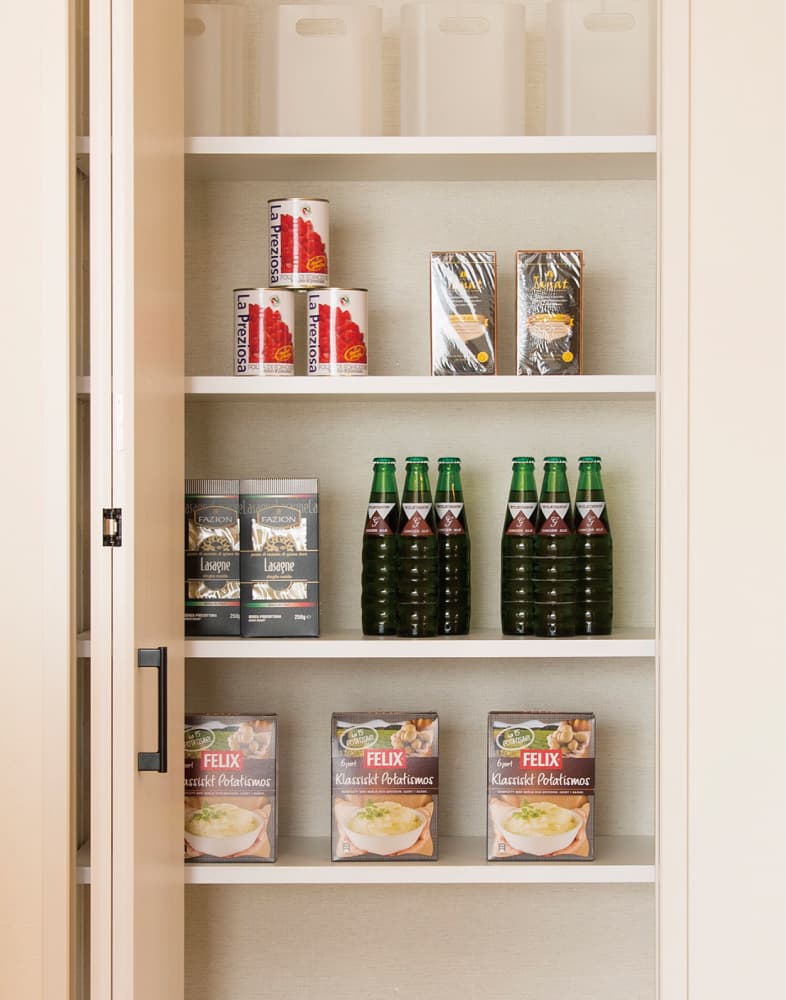 調理器具や食器類の収納、食料品の買いだめなどにも重宝するパントリー。