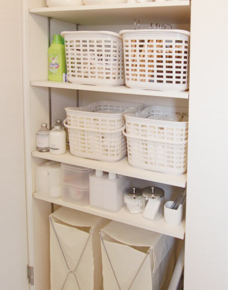 タオルや洗剤・ティッシュなどの買い置きがしまえる空間をご用意。
