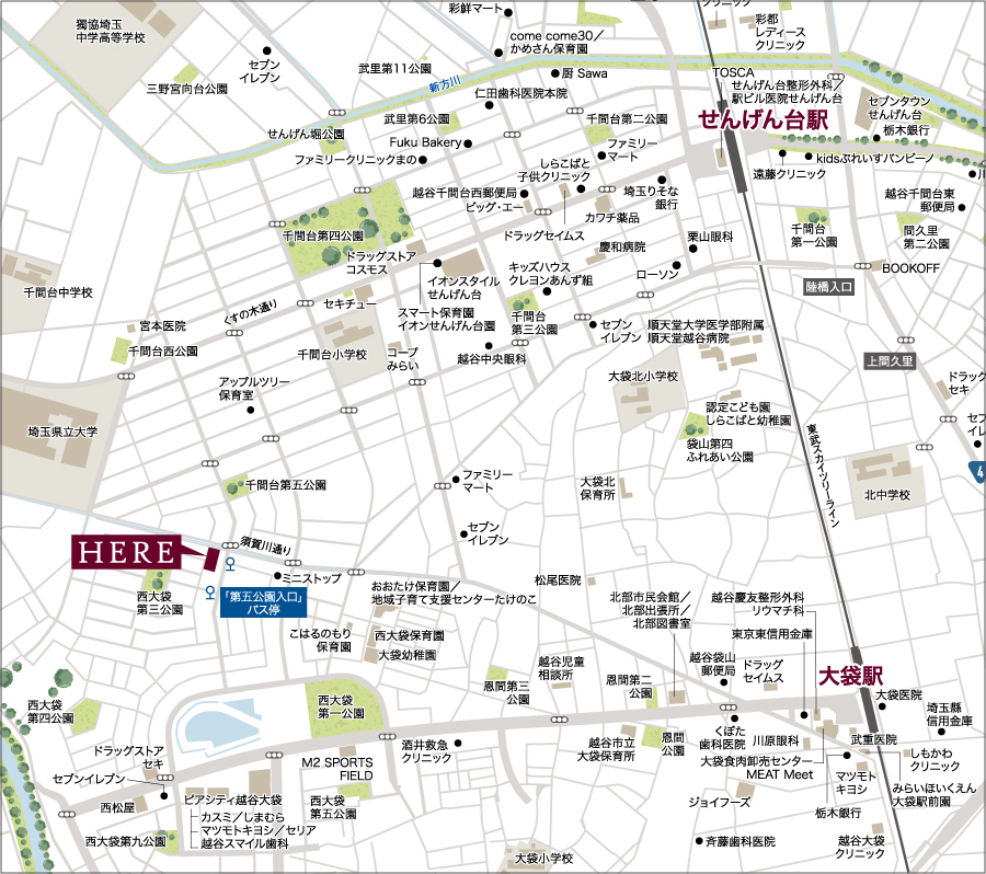 東武スカイツリーライン「せんげん台」駅まで徒歩24分 もしくは バス11分「第五公園入口」バス停まで徒歩2分