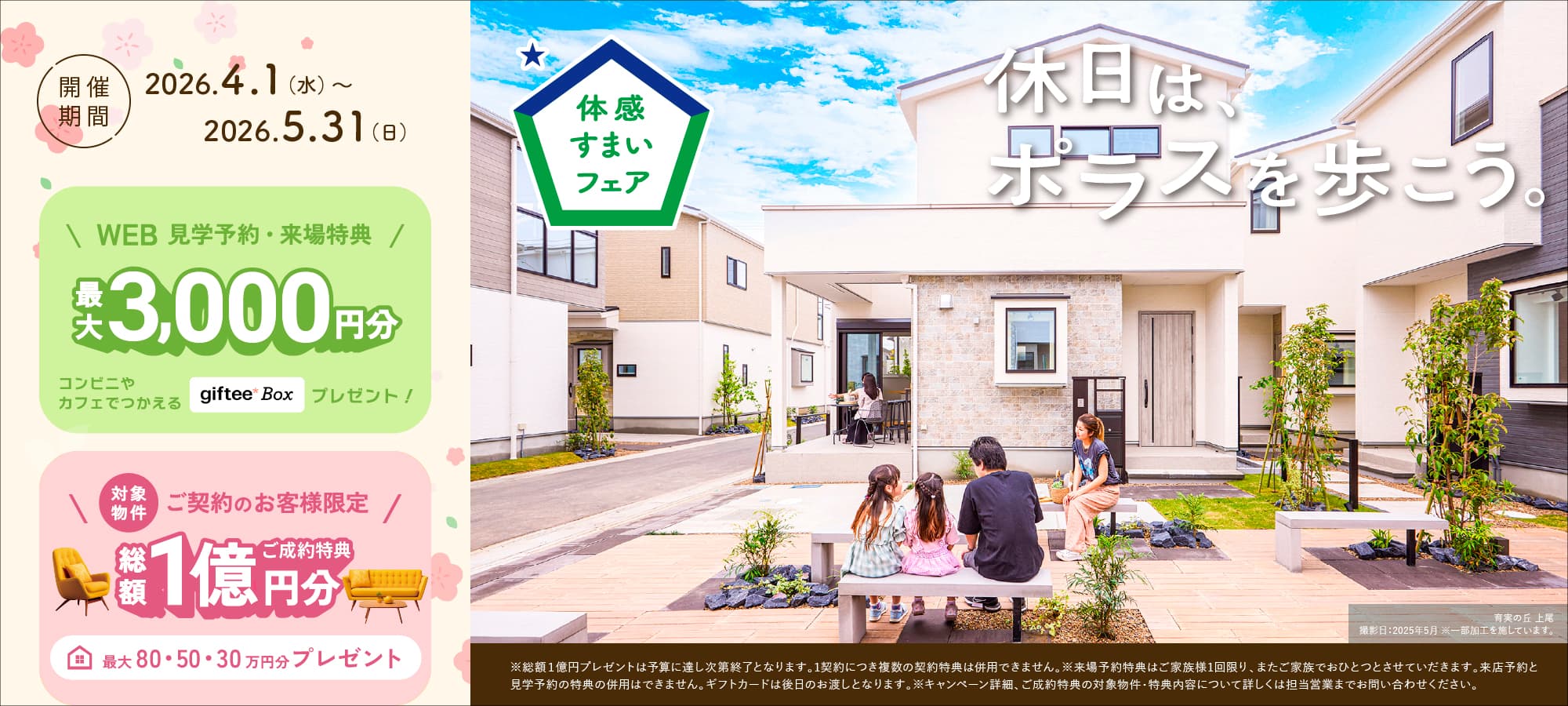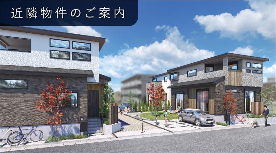 緑とゆとりの5邸の街都心への優れたアクセス性を持ちながら、穏やかな時間がゆるやかに流れるこの地。全邸132㎡超のゆとりの敷地に、街区内には5.0m道路を計画。テラスや広々バルコニーなど開放感に工夫を凝らした5邸の住まいが誕生します。