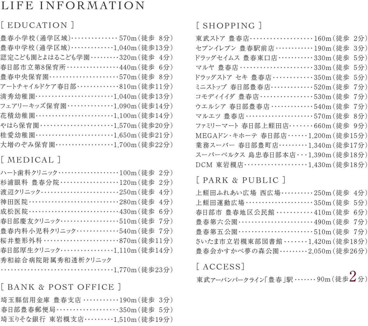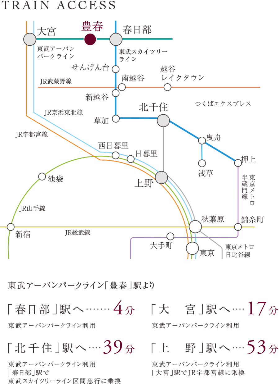 LOCATION MAP 東武アーバンパークライン「豊春」駅徒歩2分の駅近な暮らし
