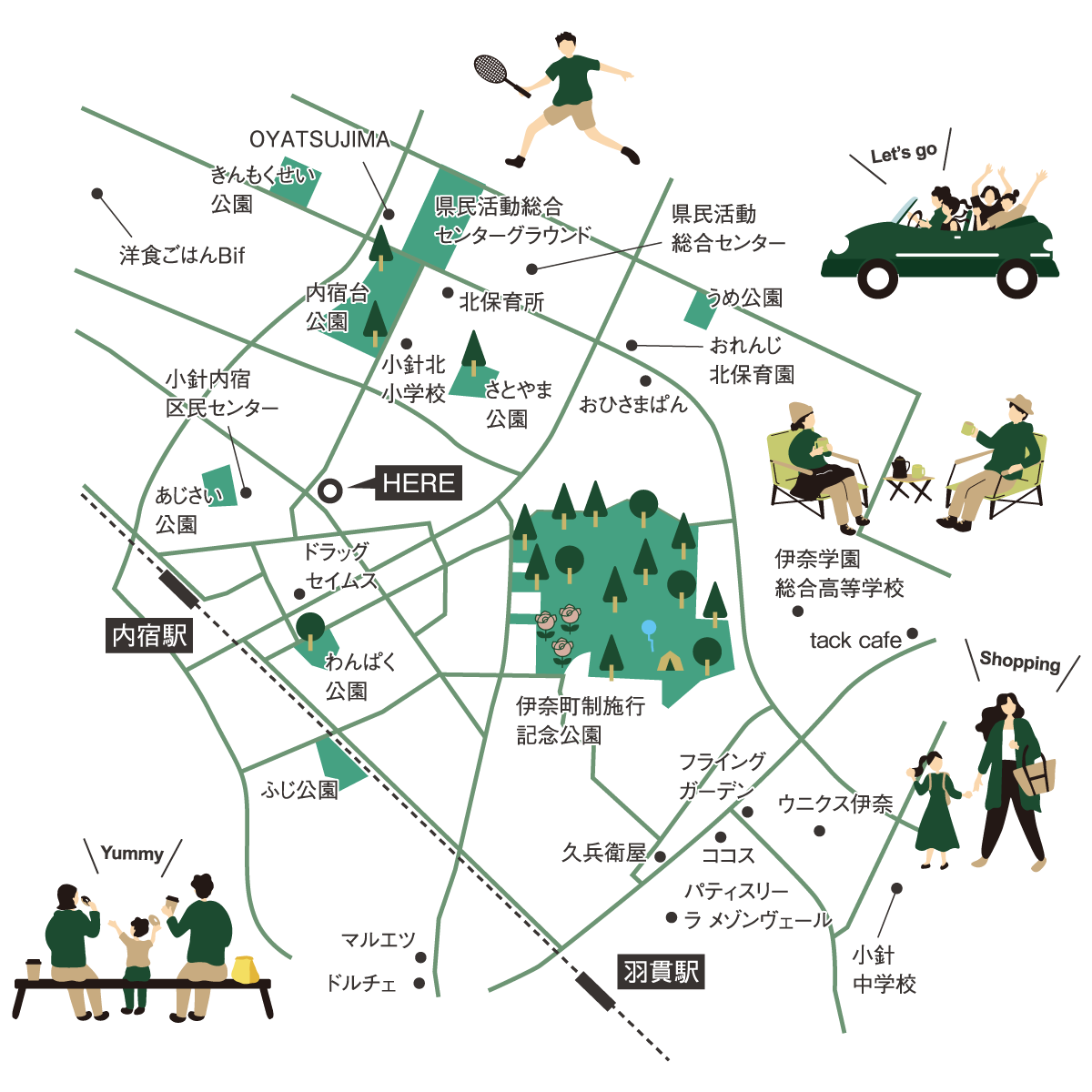 ジョイフル街区:徒歩16分/1,210m コージー街区:徒歩16分/1,280m
