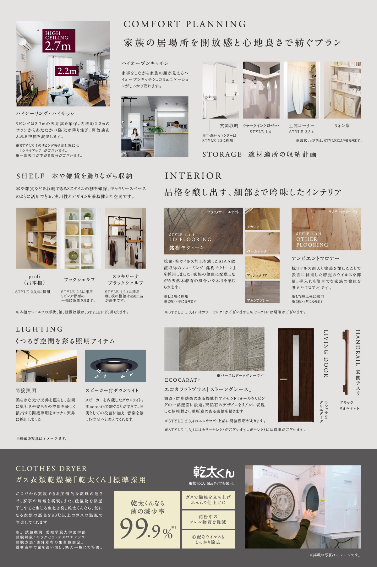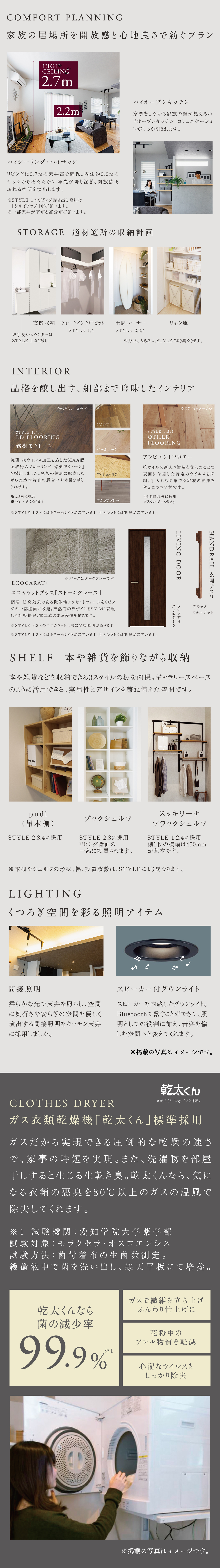 ◆バス停まで徒歩3分◆ガス衣類乾燥機【乾太くん】標準設置◆小学校・中学校、徒歩10分圏内に揃う住環境◆保育園・幼稚園が徒歩圏に多数点在◆公共施設や公園、普段使いのスーパーなど徒歩10分圏内に充実した環境◆最大60年保証【ロングサポート60】対応【Web来場予約特典】WEBから来場予約の上、ご来場いただいた方に「ギフトカード5,000円分」をプレゼント!