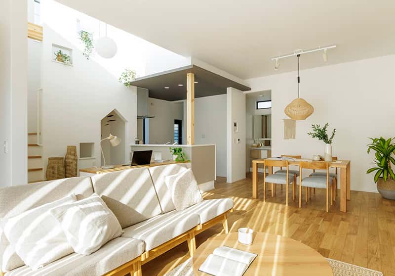 室内が伸びやかに寛げる憩いの場所となるよう、細部までこだわったプランニング。