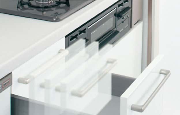 開け閉めの衝撃を吸収し、ゆっくり閉まって 安心なブルモーション機能を装備。 -