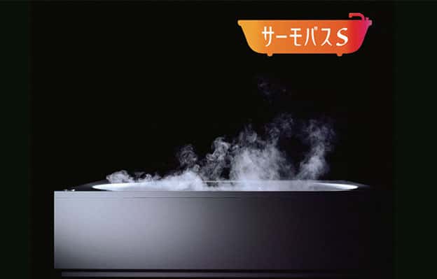 ダブル保温構造でお湯が冷めにくいサーモバスS。4時間後の温度変化はわずか2.5℃以下。最後のひとりまで温かなお湯に浸かっていただけます。 -