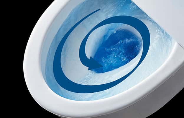 強力な水流で便器鉢内のすみずみまで洗浄。少ない水でもしっかり汚れを洗い流します。 -