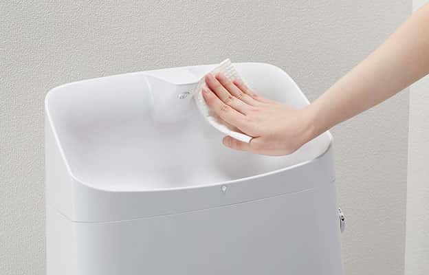 渦を生み出す水路設計と、ゴミをまとめる底面構造で、髪の毛などが小さくまとまります。日常のお手入れはごみをポイッとするだけ。汚れが付きにくくキレイが長持ちします。 -