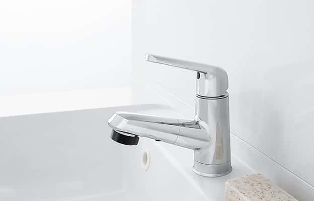 吐水口と手洗い鉢との段差が滑らかなので、サッとひと拭きでお掃除できます。 -