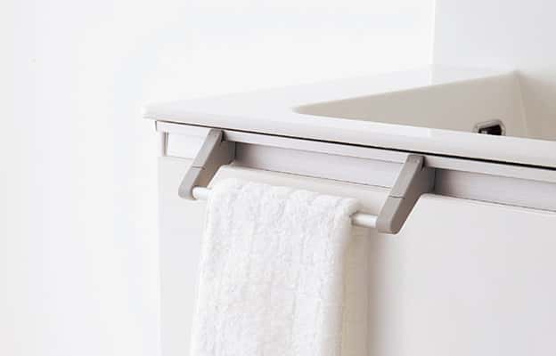 手洗い後にスムーズに手を拭くことができるように、専用のタオル掛けを設置しました。