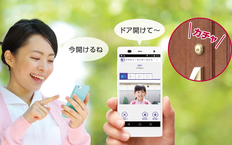 不在時でもスマホで、来客応対に鍵の施解錠が可能。