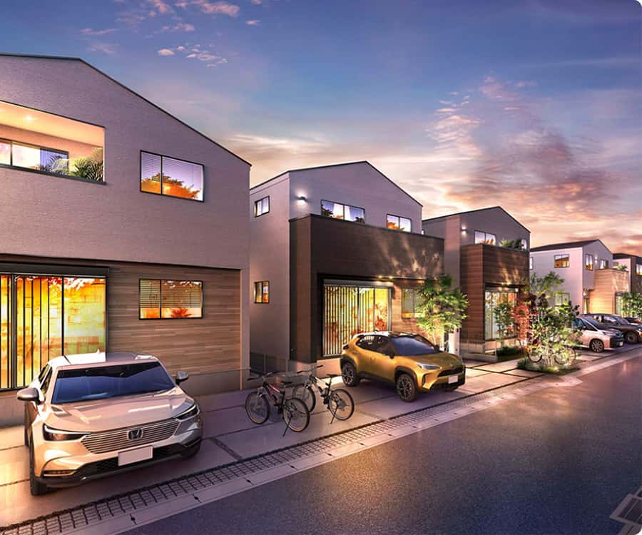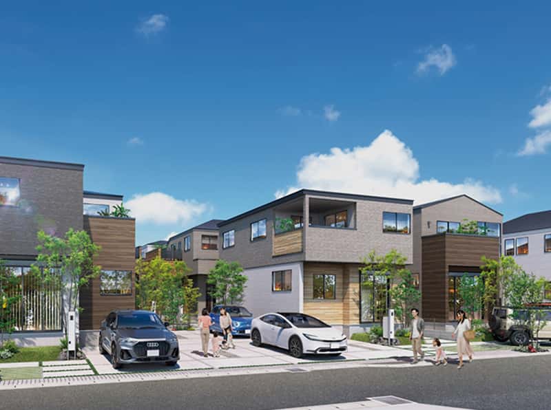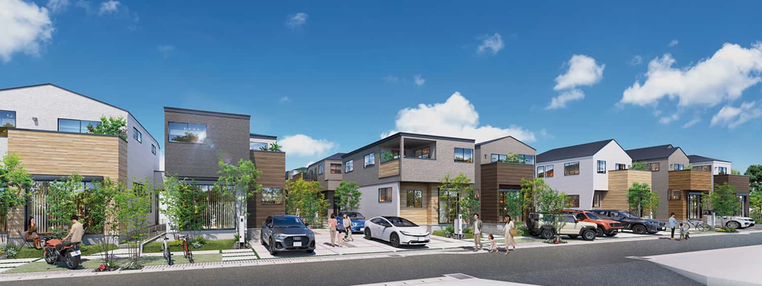 アースカラーの外壁を採用し落ち着きある街並みを創出G
