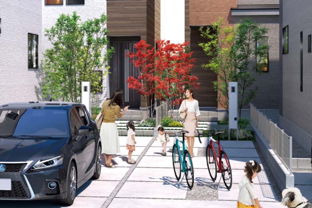 周辺地域に存在感を漂わせる、100.03㎡~最大127.06㎡の敷地面積が街並み全体にゆとりある風景を描きます。同じ時期にこの街に住まうことで共通の話も多く、住民同士の交流や、繋がりが自然と深まる全37邸のスケール感。公園も近いことから子どもたちと一緒に遊びに行ける環境です。