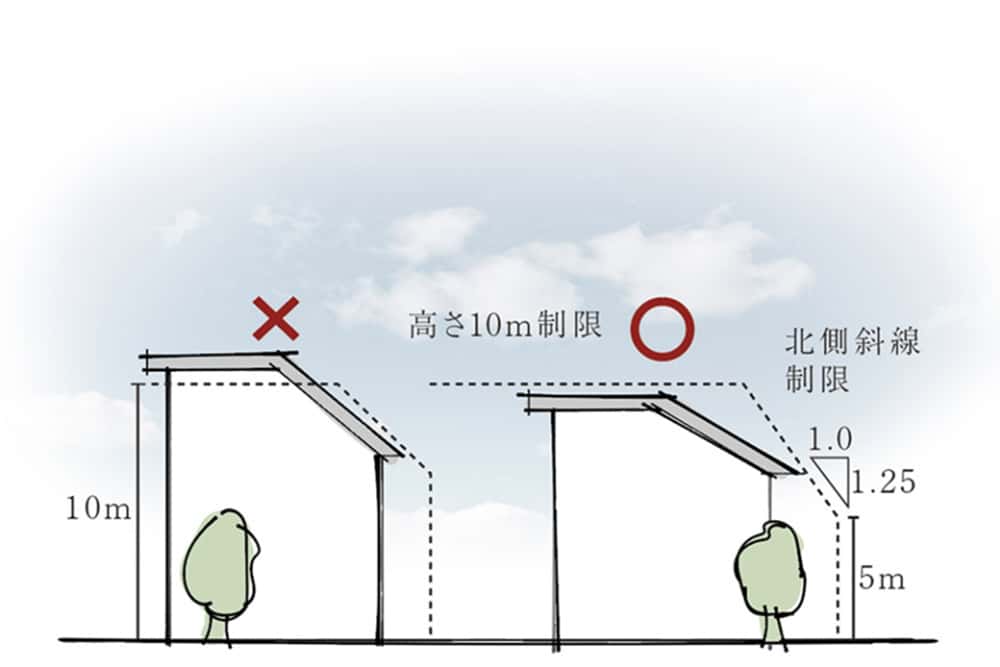 高さ制限や建物用途の制限があることで、幹線道路や商工施設の喧騒から遠ざかった、落ち着きのある暮らしを望むことができる、暮らしやすい地域です。