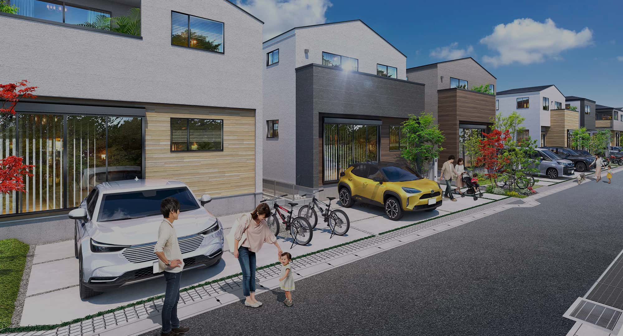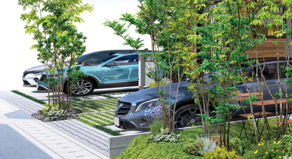 生活に欠かせないカースペースを確保。通勤通学やお出かけ、来客の際に重宝します。