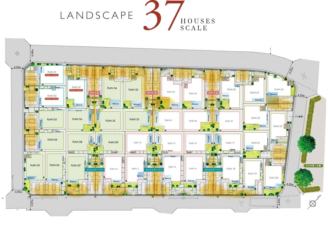 住民同士の交流やつながりが自然と深まる全37邸のスケール感。