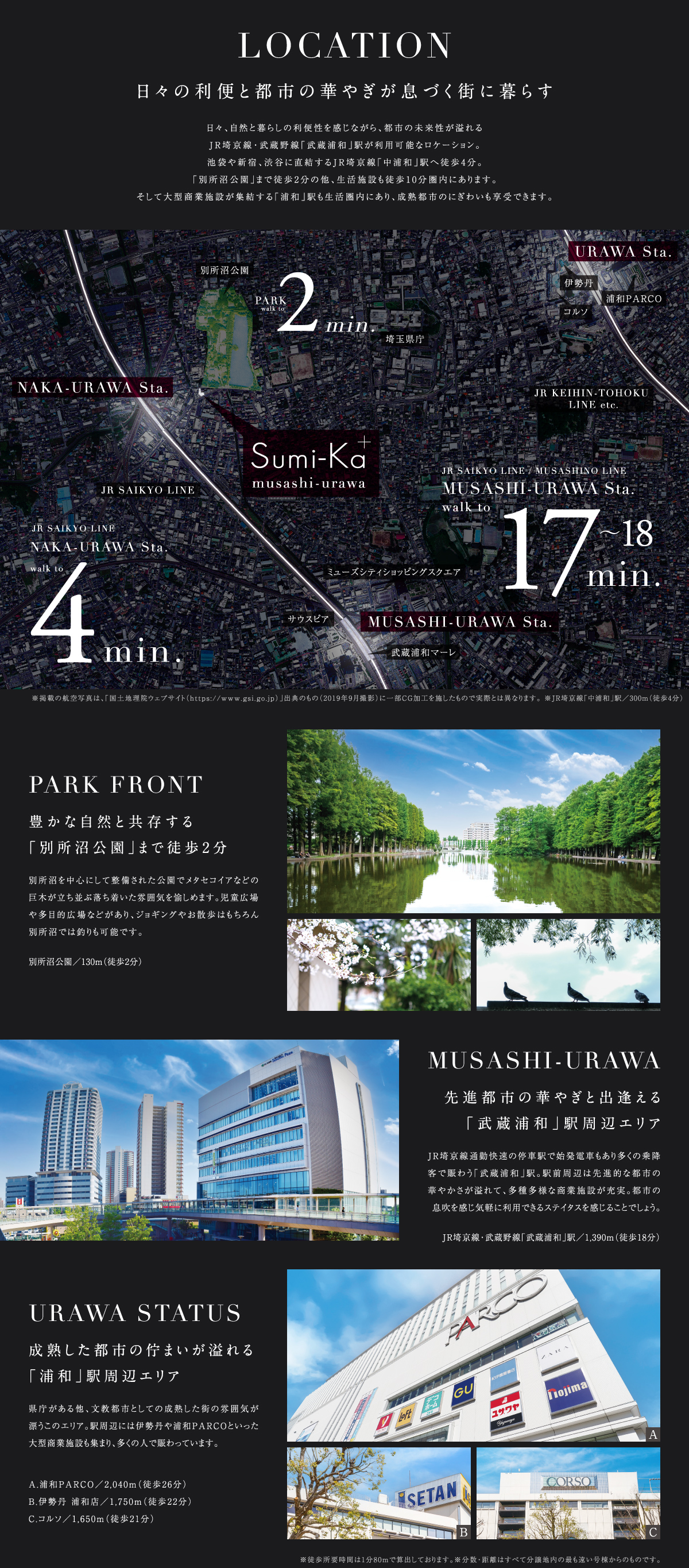 JR京浜東北線・JR東北本線・JR高崎線「浦和」駅までバス14分「別所沼公園」バス停まで徒歩3~4分 /「浦和駅西口」バス停※混雑状況により変動あり