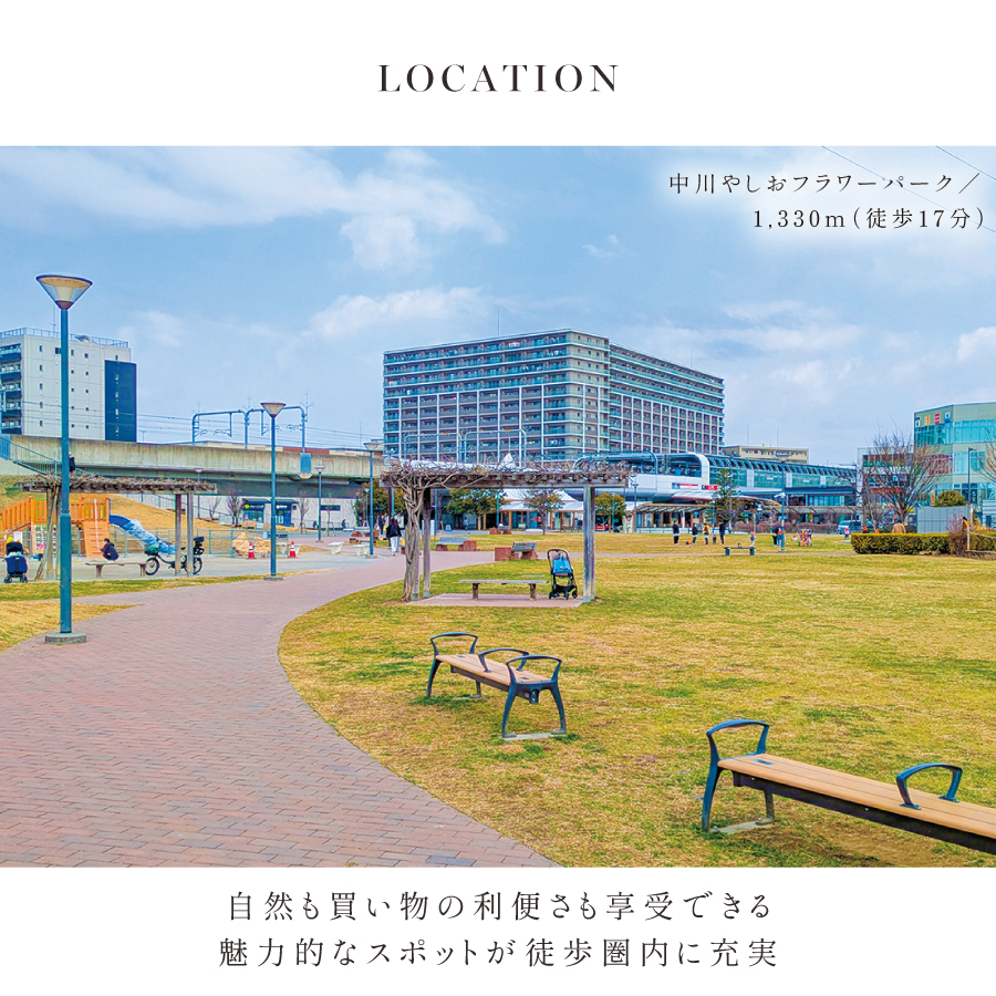 瑞々しい木々や花、そして伸びやかな風景が身近に広がり、華やかな商業施設が心を弾ませてくれる八潮の地に