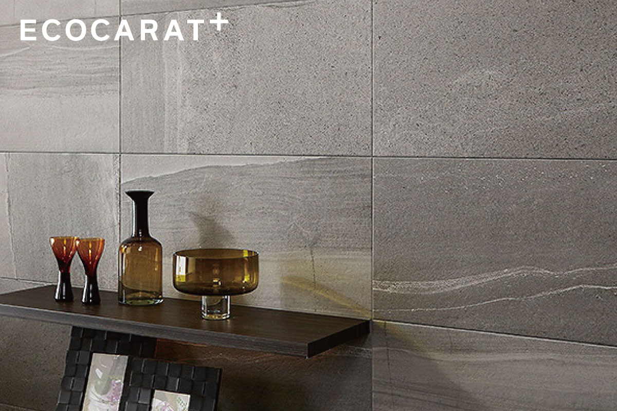 重厚感のある石の表情をリアルに再現したデザイン性と機能性が魅力的な機能性建材。自然と心地よい湿度に調湿し、気になるにおいや住まいの有害物質も低減します。※カラーは号棟により異なります。