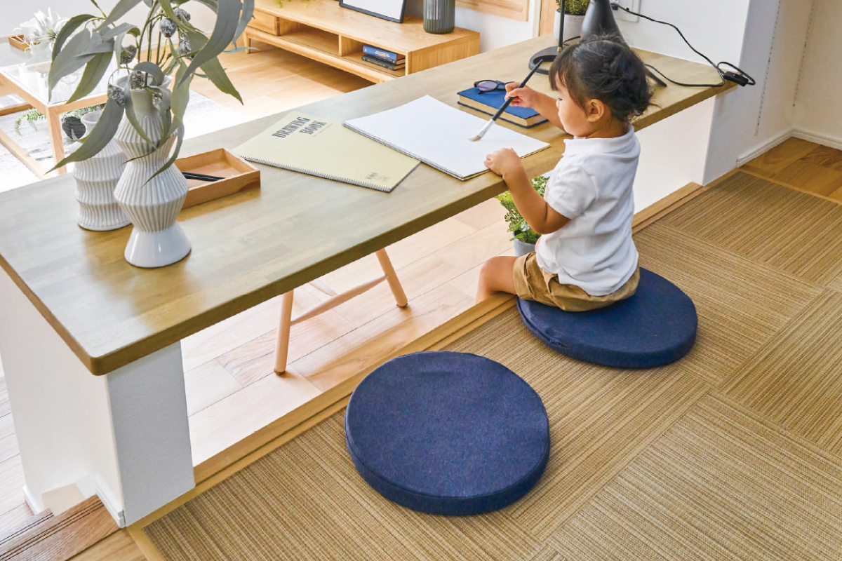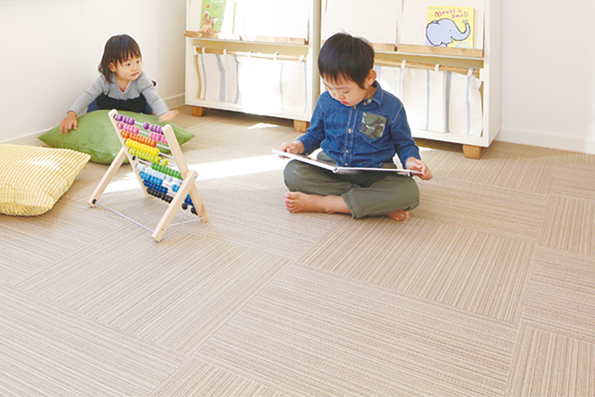 さらりとした肌触りと優れた弾力性が特徴のテキスタイルフロア。素足でも気持ちよく、お子様の遊び場や家族の趣味空間としても活用できます。