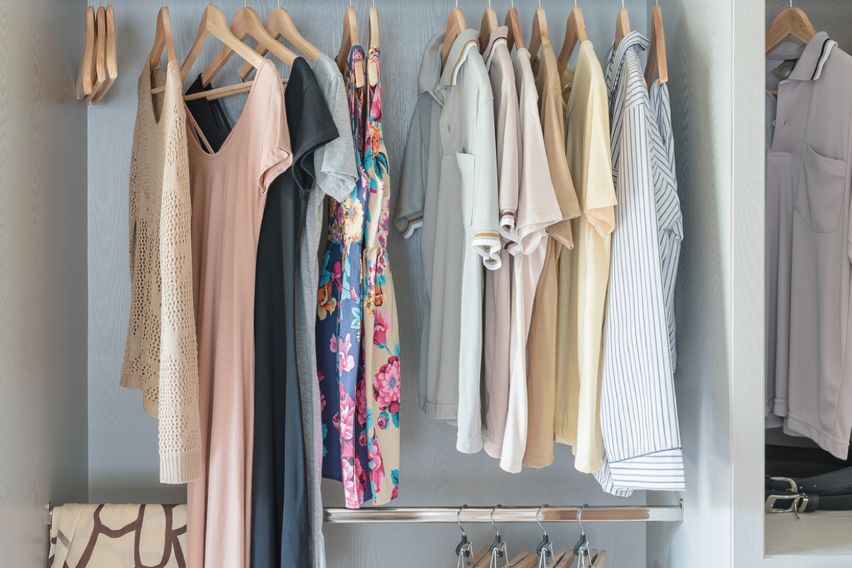 季節ものの衣類や鞄などをたっぷり収納できます。吊るす収納をメインにすることで毎日の時短にも繋がります。