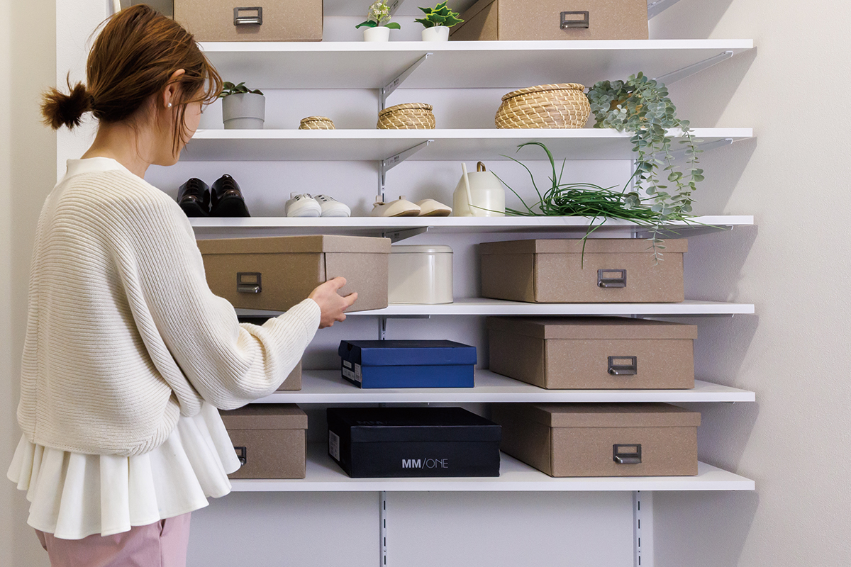 キッチン家電などをスッキリと収納しておけるパントリー。保存食や飲料なども保管しておけるので、いざという時の備えにも活躍します。