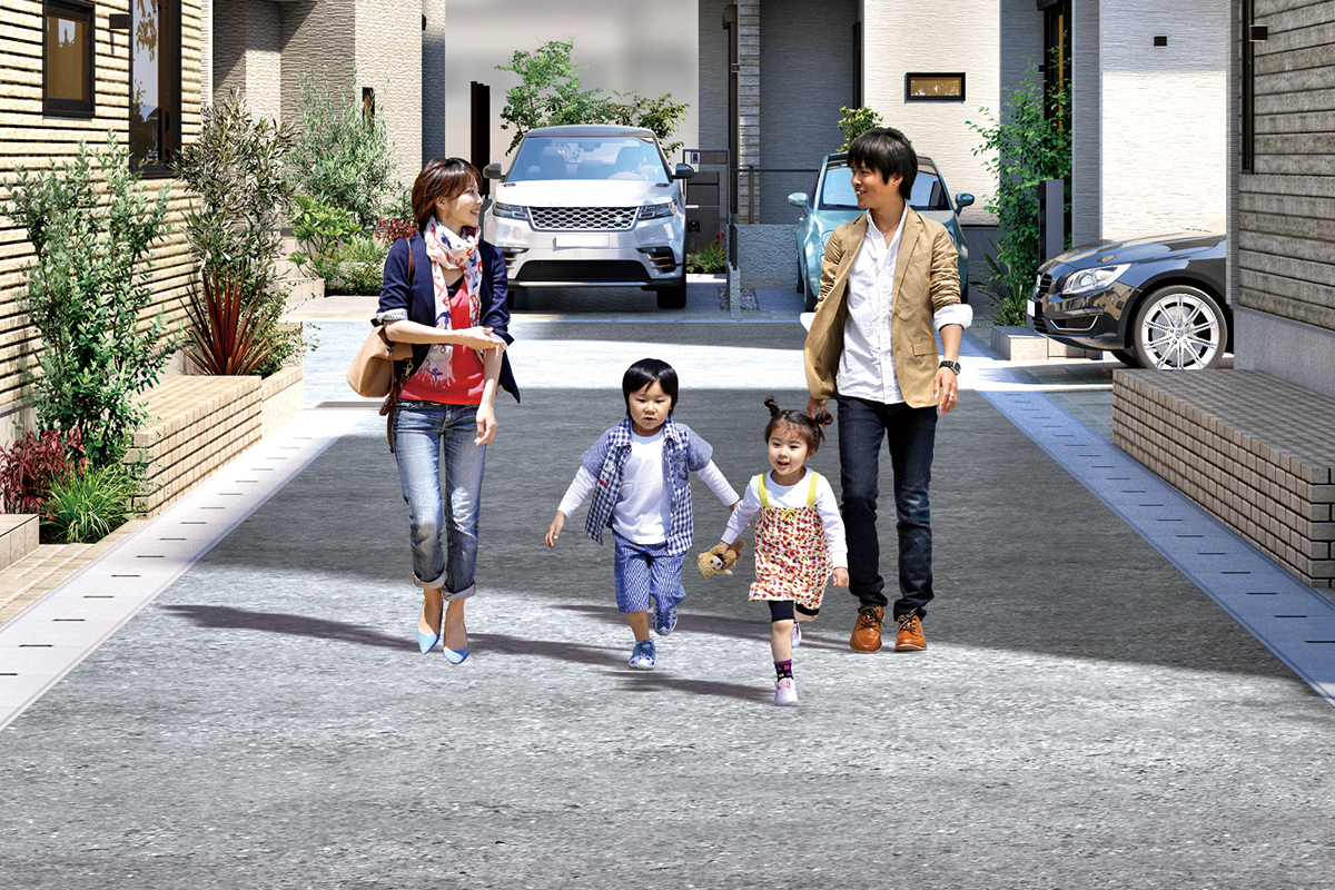 街区内道路は車の通り抜けがなく、住民以外の車の侵入も少ないため、安心安全です。
