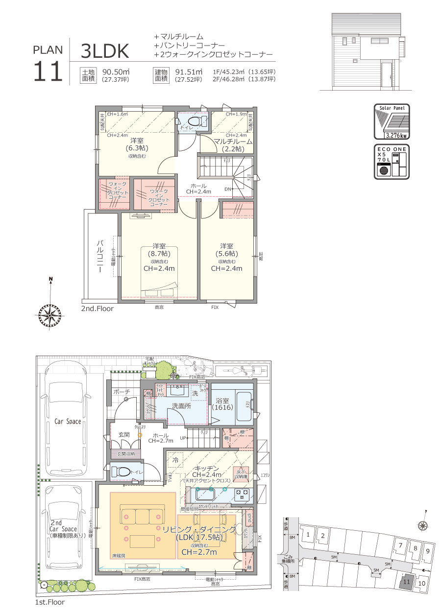 来客用やセカンドカー用として活躍する2台分のカースペース。休日の洗車や、荷物の出し入れもスムーズに行なえます。※車種制限及び車の入替の手順が必要な場合がございます。