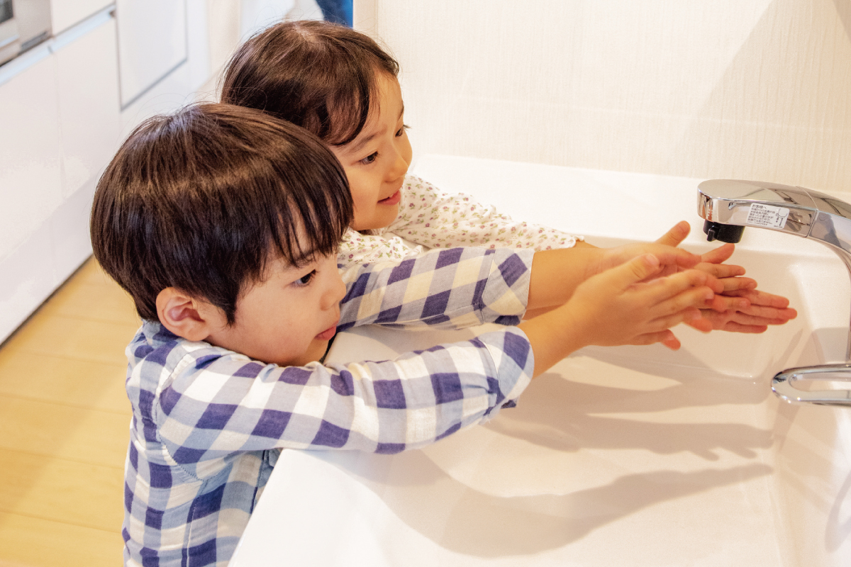 水まわりの移動がラクなプランニングを実施。家事にかかる労力と時間を減らす、子育て世代に嬉しい動線計画としています。